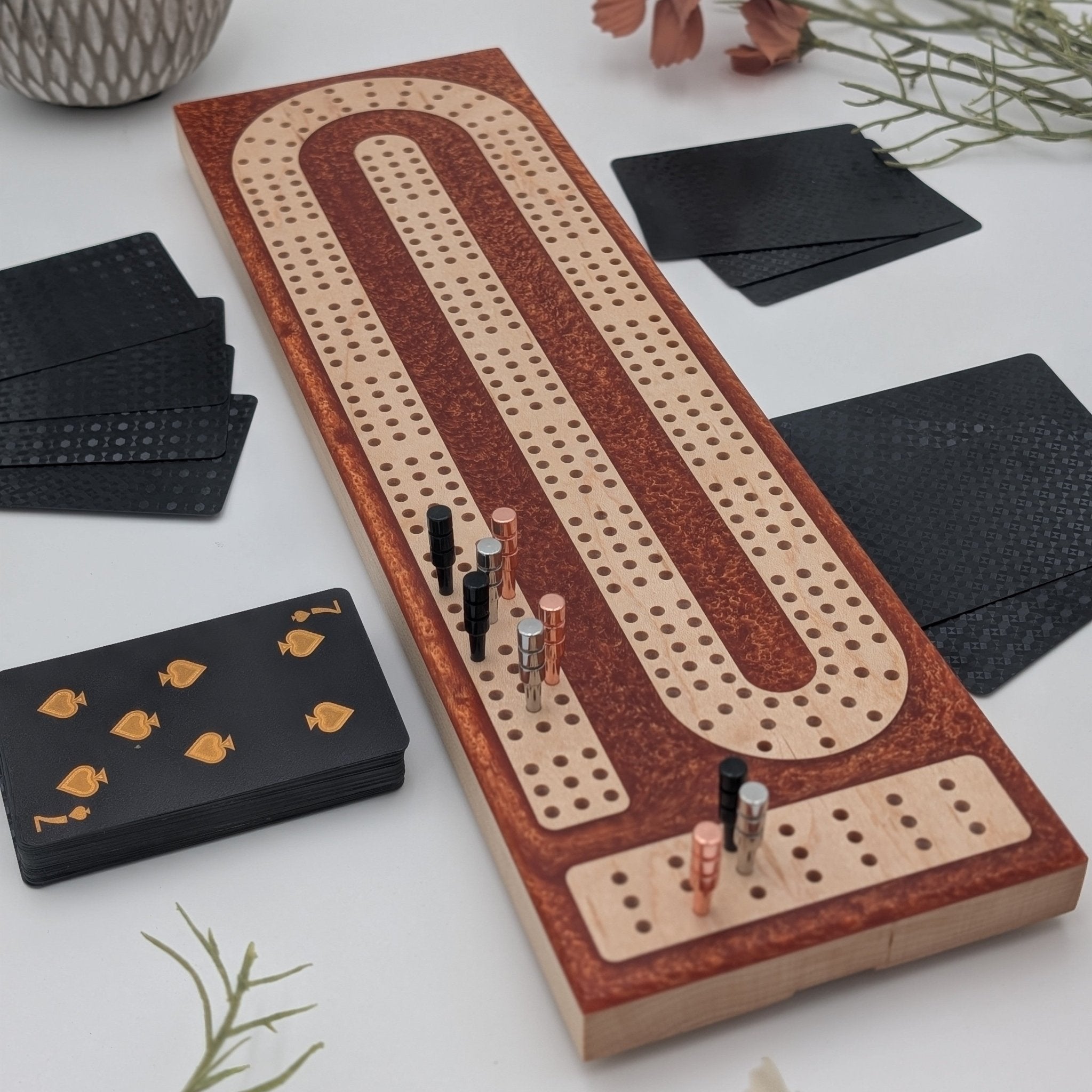 Reverse Pour Copper Resin Premium Cribbage Board - Three Lane Cribbage Board