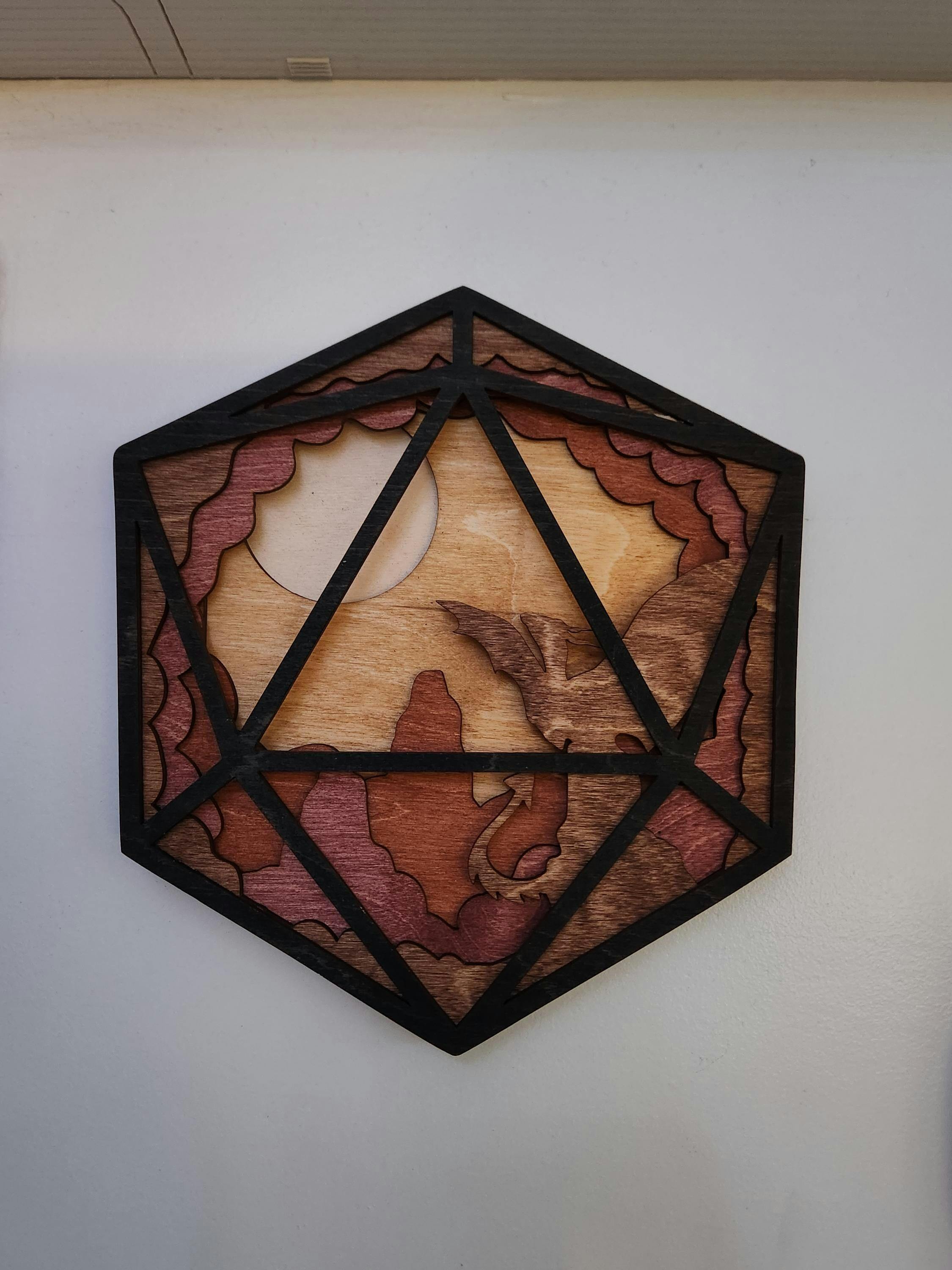 Now, dear adventurers, let the adventure unfurl within your very abode with our D20 Wooden Wall Art. A realm of custom stain or paint options await to transform your vision into a unique masterpiece. Crafted with utmost care from premium materials, this wall art shall become the crowning jewel of your realm. Delay not - embark on this quest today and summon the enchantment of the Dungeons and Dragons universe into your own dwelling!