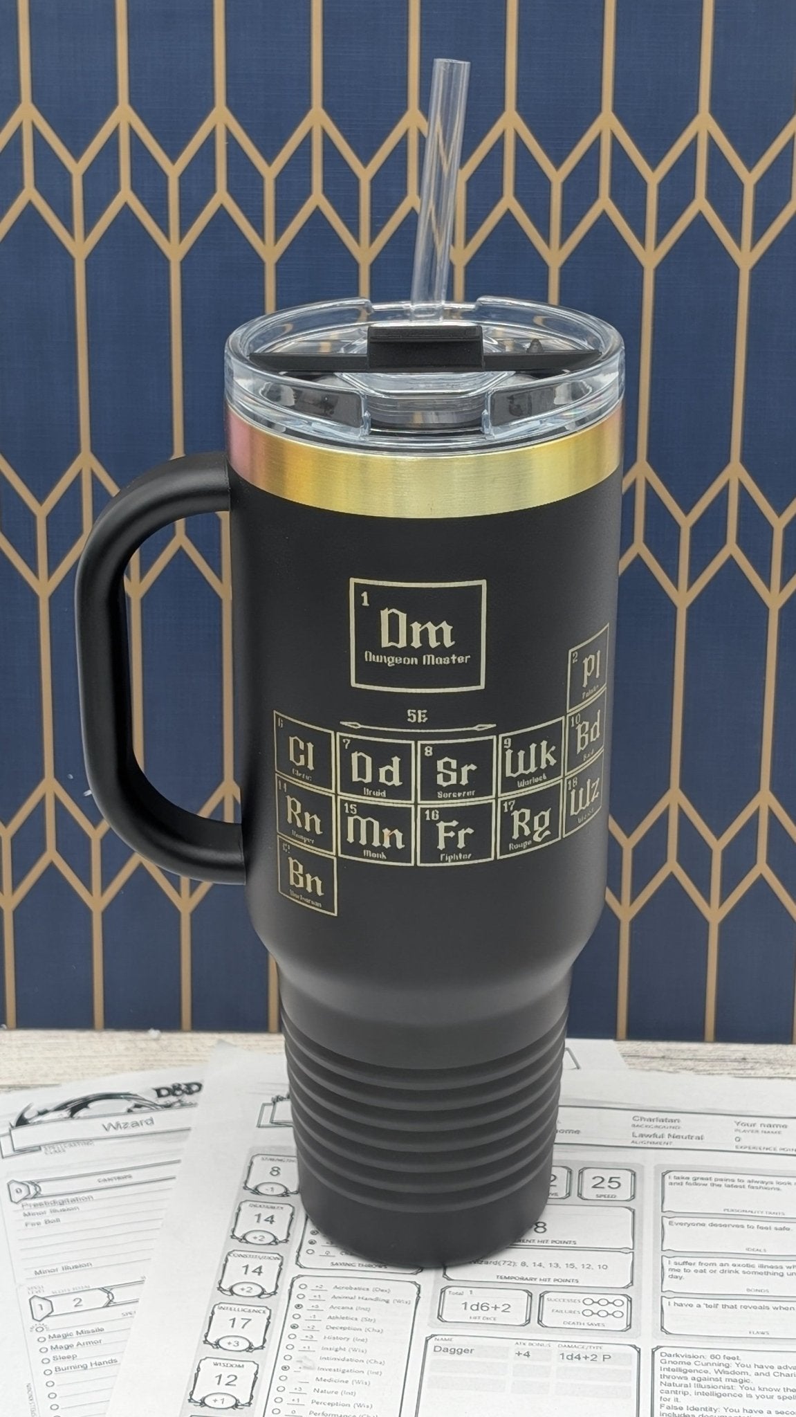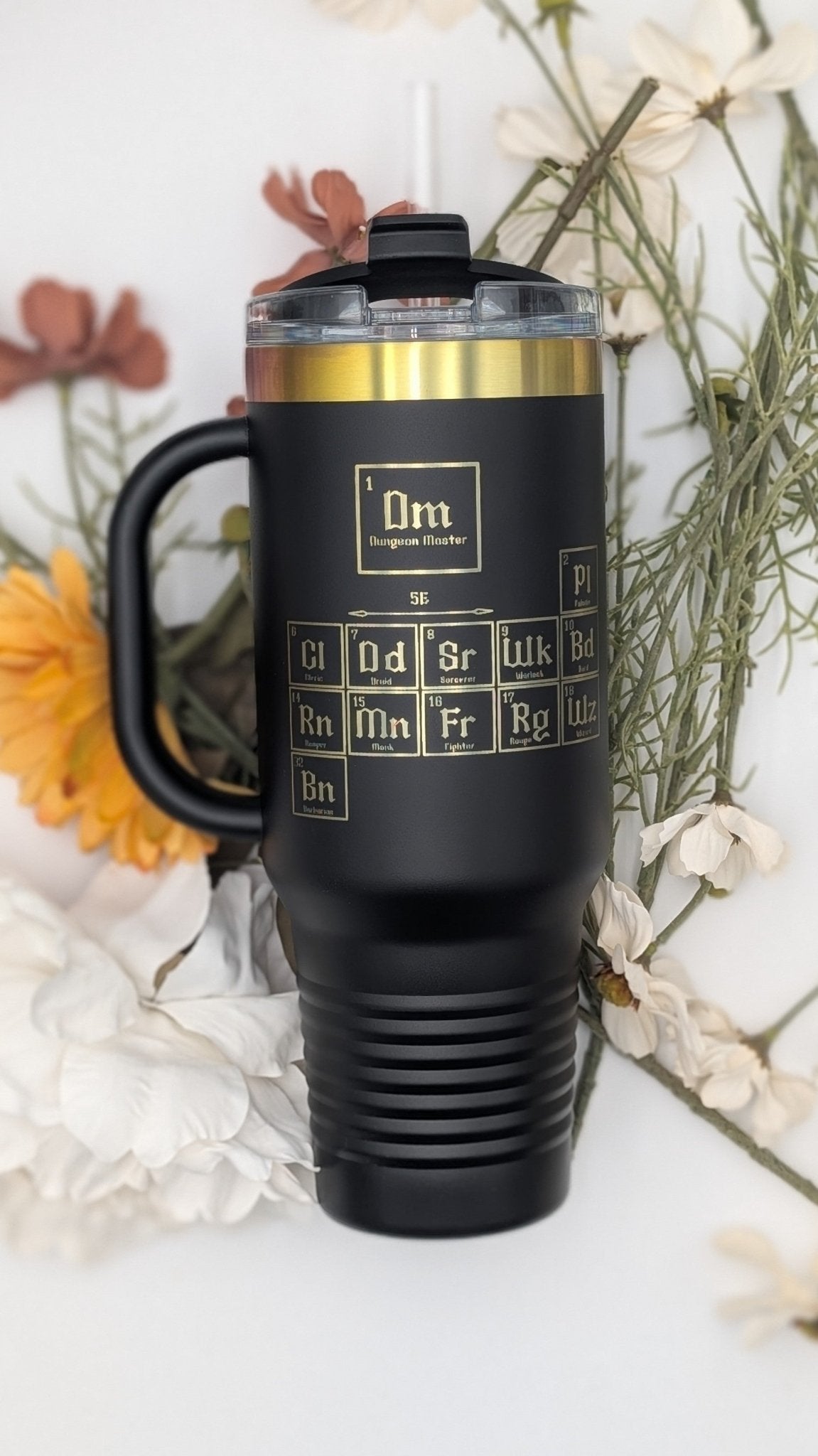Fuel your next adventure with this Dungeons & Dragons Periodic Table Tumbler, designed for DMs, players, and tabletop RPG enthusiasts. Featuring a laser-engraved periodic table of D&D classes, this premium insulated mug keeps your drink hot or cold for hours—perfect for long game nights or epic campaigns.