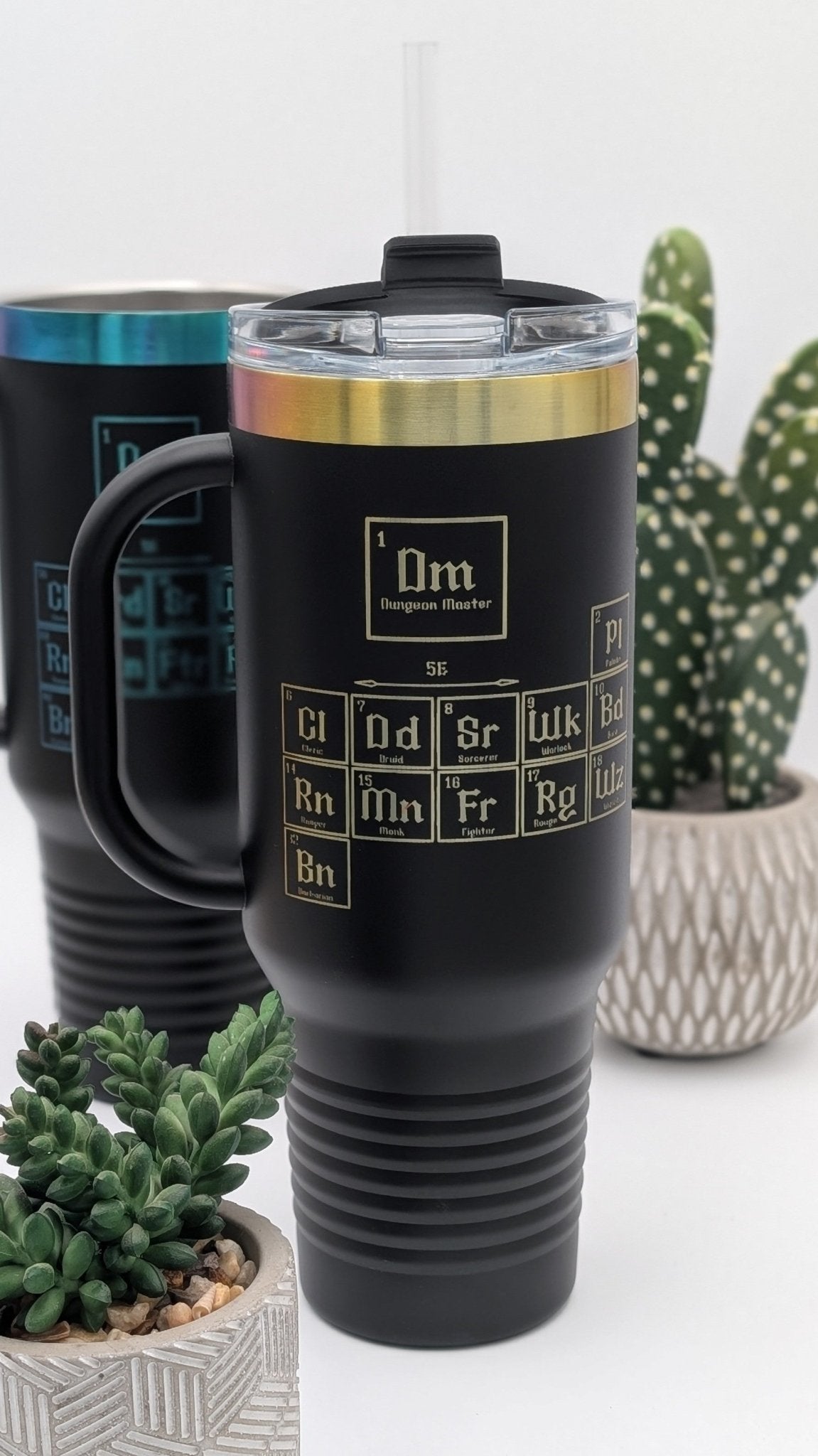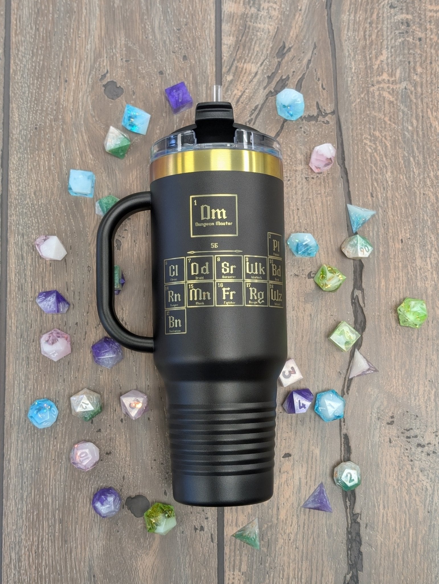 Dungeons & Dragons Inspired Peroidic Table Tumbler - 40oz Stainless Steel With Prismatic Engraving Travel Mug