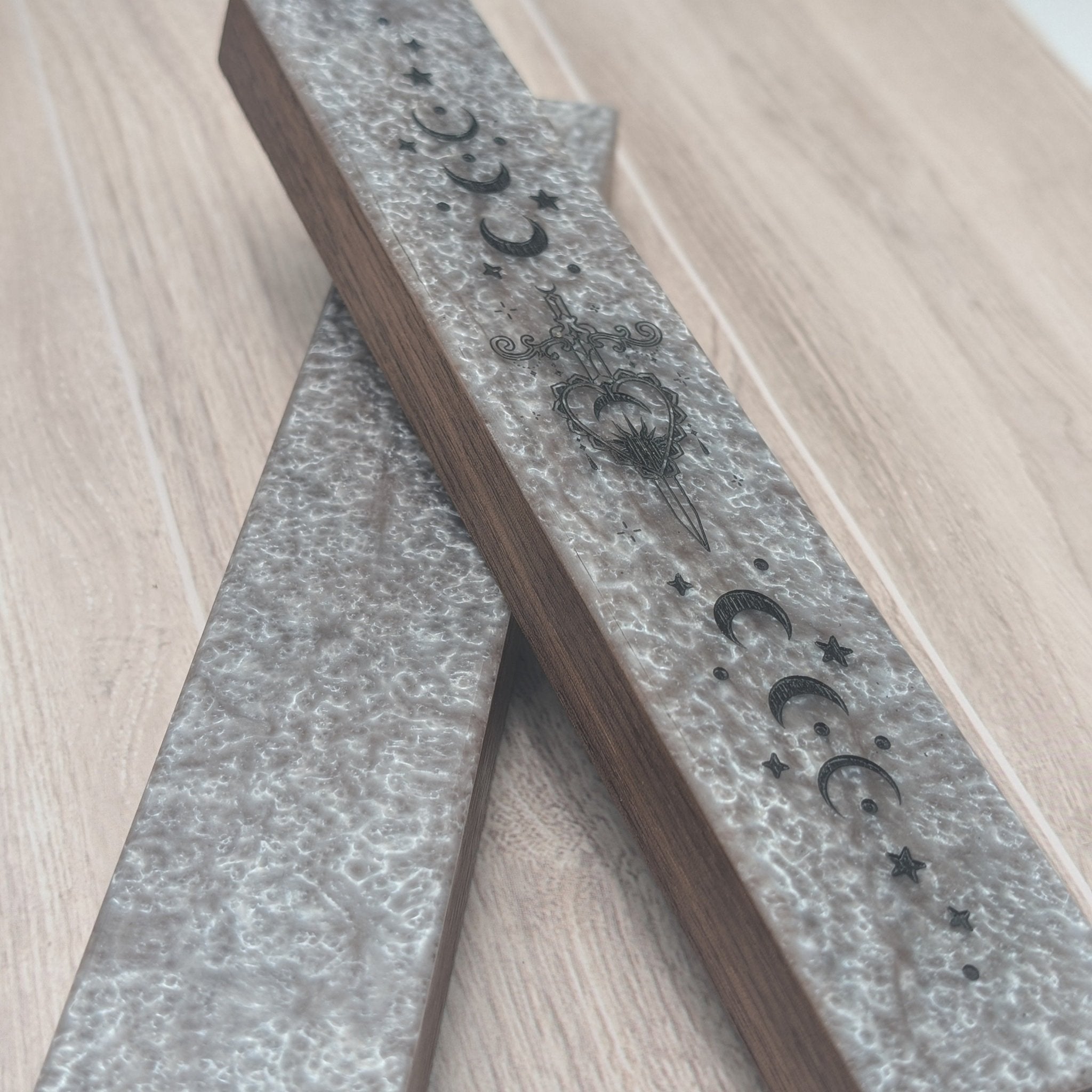Guide your dice home with the Eclipsed Heart Dice Vault, a beautifully crafted sanctuary designed for adventurers who seek both fate and fortune. This premium hardwood dice vault features a finely engraved celestial pattern. Set against a customizable resin inlay, you choose the perfect color to reflect your character, campaign, or personal style. The engraving is further enhanced with your choice of paint-filled detailing, ensuring a truly one-of-a-kind piece.