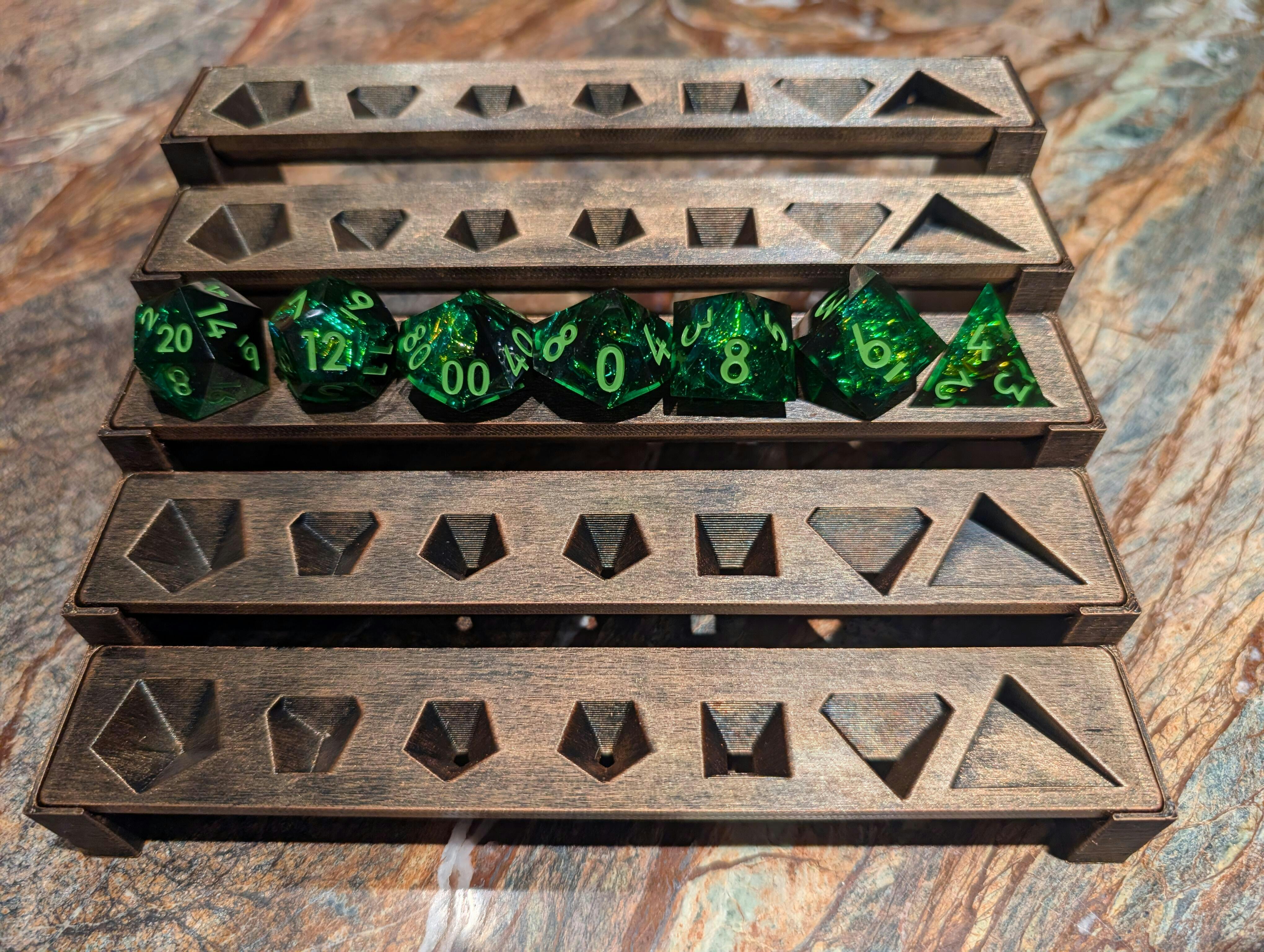 Made to order products take 5-7 business days to build. These products include: inspired dice sets, cribbage boards, dice vaults, and wooden dice trays.